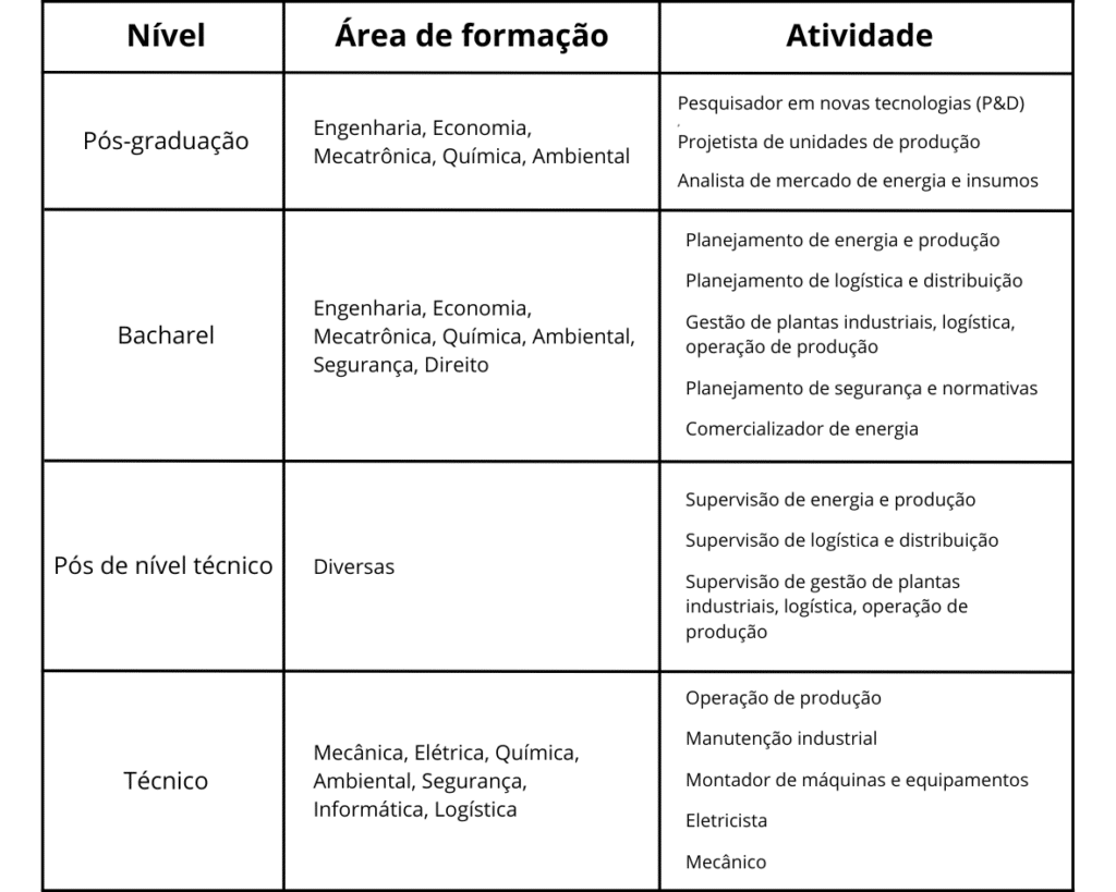 - Especialista Técnico em Operação de Usinas de Produção de Hidrogênio Verde;